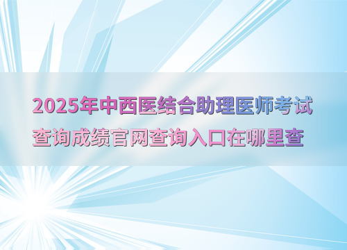 2025年中西医助理医师综合考试成绩于9月23日公布,较往年提前约一周。