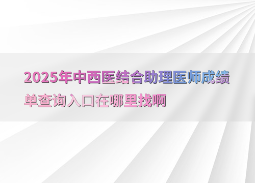 2025年中西医结合助理医师综合考试成绩已于9月23日公布,考生可通过国家医学考试网(http://www.nmec.org.cn/)首页“成绩查询入口”进行查询。