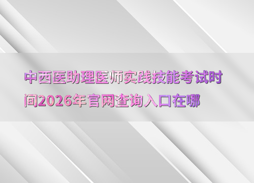 2026年中西医助理医师实践技能考试时间为6月6日至14日,具体考试日期和地点以准考证为准。