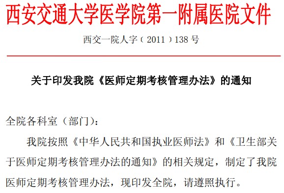 1.西安交通大学医学院第一附属医院医师定期考核管理办法