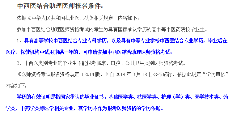 也就是说,如果是医学技术类则无法参加中西医结合执业助理医师考试。