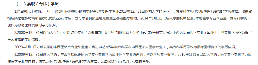 2、中西医类别专业的毕业生不能报考临床、口腔、公共卫生类别医师资格考试。