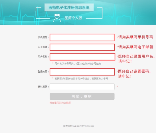 l 医师在注册账户时所填写的姓名和身份证号,是系统验证资格和执业信息的依据,请认真填写。(注:姓名不是登录用户名,请不要输入字母及数字)