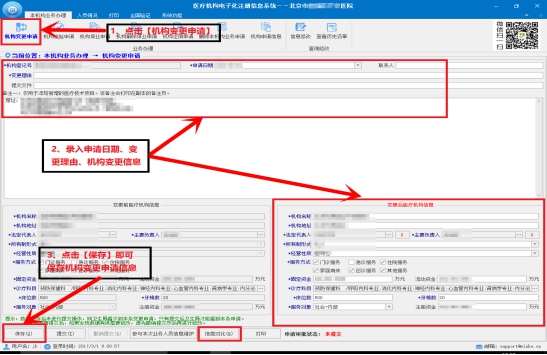 注:变更信息填写完成后,请保存并提交,否则卫生计生委看不到变更申请信息。