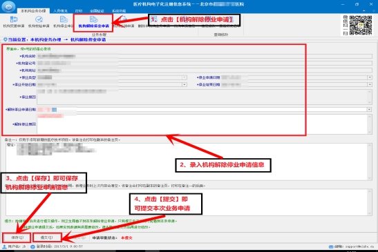 注:注册信息填写完成后,请保存并提交,否则卫生计生委看不到注册申请信息。