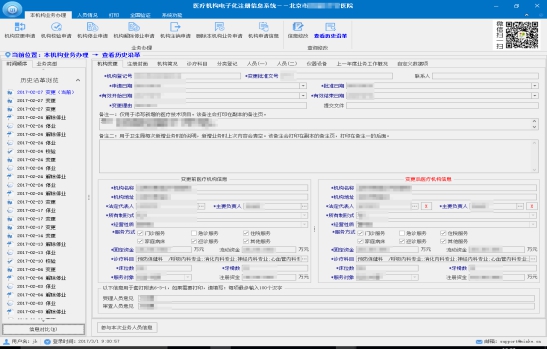 l 此模块可提交机构名称、地址、诊疗科目等变更业务。
