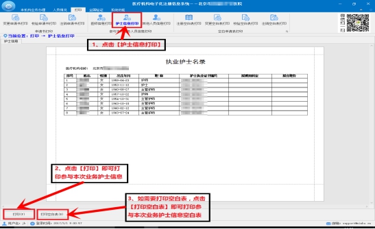 注:本机构已经提交某项业务申请,并添加了参与本次业务护士信息,才可以打印参与本次业务申请的护士信息。