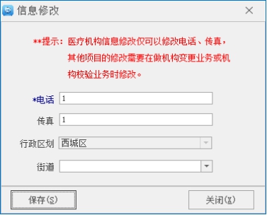 l 单击【信息修改】按钮,进入“信息修改”窗口。在信息修改窗口中,可以修改电话、传真、行政区划等信息。如图所示: