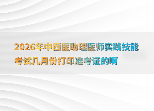 2026年中西医助理医师实践技能考试定于6月6日至14日举行,准考证打印时间因地区而异,一般在考前1-2周开放。