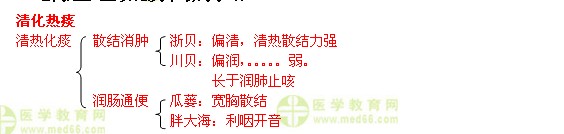 解析:瓜蒌【主治病证】(1)痰热咳喘。(2)胸痹,结胸。(3)痈肿:肺痈,肠痈,乳痈。(4)肠燥便秘。