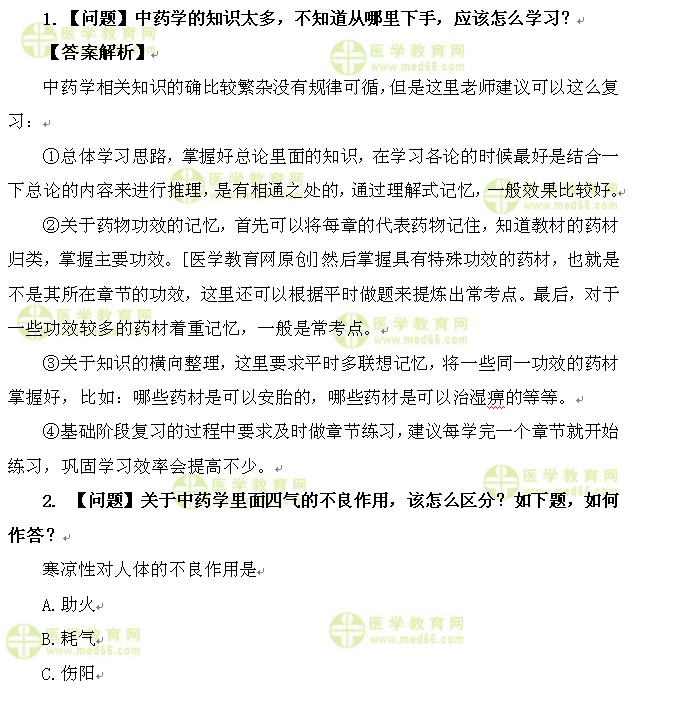1.【问题】中药学的知识太多,不知道从哪里下手,应该怎么学习?