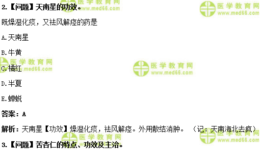 2.【问题】天南星的功效。