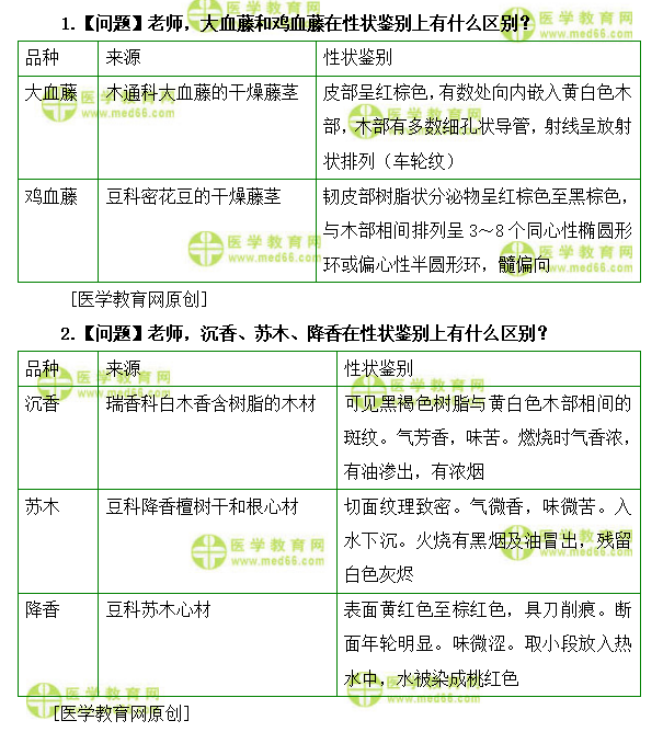 2.【问题】老师,沉香、苏木、降香在性状鉴别上有什么区别?