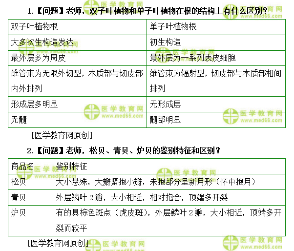 1.【问题】老师,双子叶植物和单子叶植物在根的结构上有什么区别?