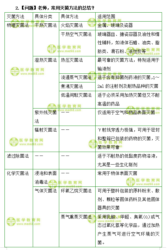 2.【问题】老师,常用灭菌方法的总结?