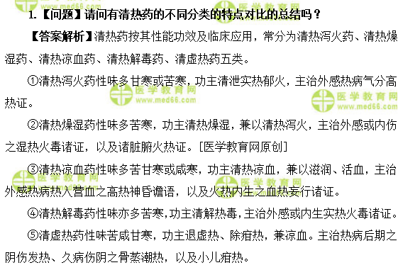 1.【问题】请问有清热药的不同分类的特点对比的总结吗?