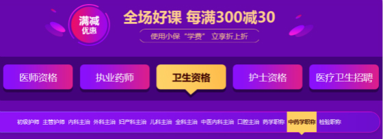 中药学职称课程均参与满减优惠活动,可与小保学费叠加使用,优惠享不停~