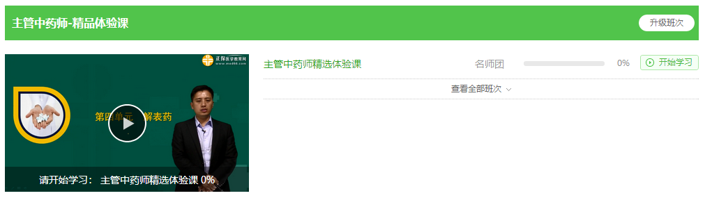 2019年主管中药师考试落下帷幕,2020年主管中药师考试备考复习已经开始啦!为了帮助大家及时找到状态、顺利进入复习,医学教育网为大家送惊喜了!2020年主管中药师考试精品课限时免费体验啦!主管中药师考生还在等什么?快来领取吧~