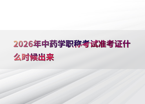 2026年中药学职称准考证打印时间为4月1日至4月26日,考生需登录考生管理平台下载并保存准考证。