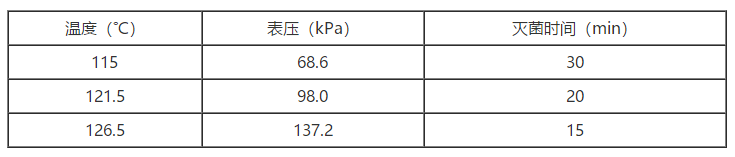 (1)热压灭菌法本法系在热压灭菌器内,利用高压饱和水蒸气杀灭微生物的方法。该法是最可靠的灭菌方法。但灭菌应以保证药物不被破坏失效为前提,所以很多药剂不宜采用热压灭菌。热压灭菌法所需的温度及与温度相当的压力和时间,见下表。