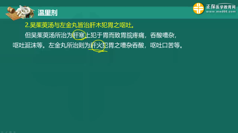 2.吴茱萸汤与左金丸皆治肝木犯胃之呕吐。