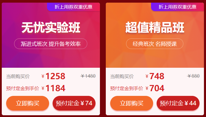 说明:11月5日00:00-11月10日23:59点击活动页面"预付定金"付定金,11月11日00:00-23:59支付尾款,可享8折购课优惠。