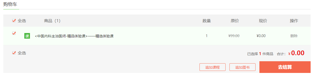 第一步:点击“领取课程>> ”将课程加入我的购物车