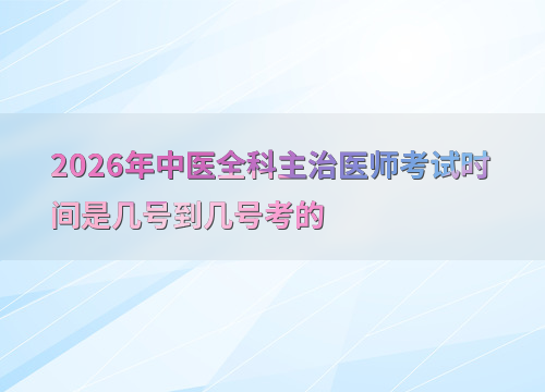 2026年中医全科主治医师考试定于4月25日举行,全天连续进行四个科目考试,无休息时间。