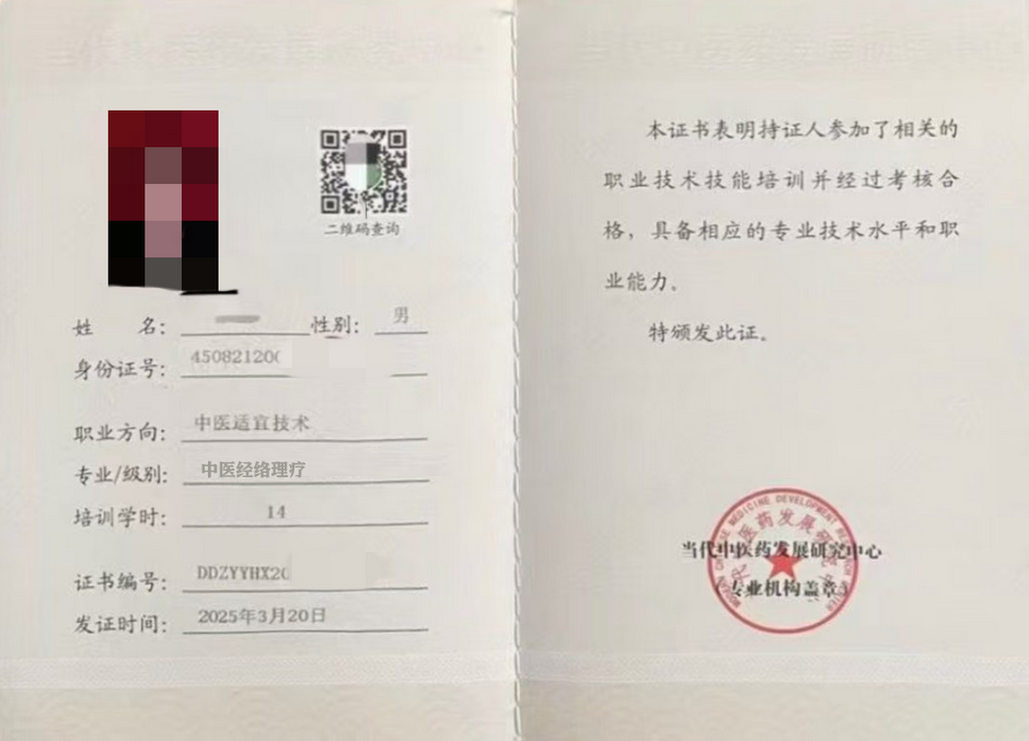 | 中医经络调理师 职业技能培训证书 |