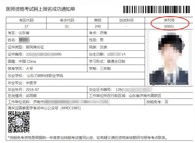 注意:山东济南2026年中医执业医师考生速查报名序列号!请济南考点所有考生登录国家医学考试网个人报名系统,查询审核情况!