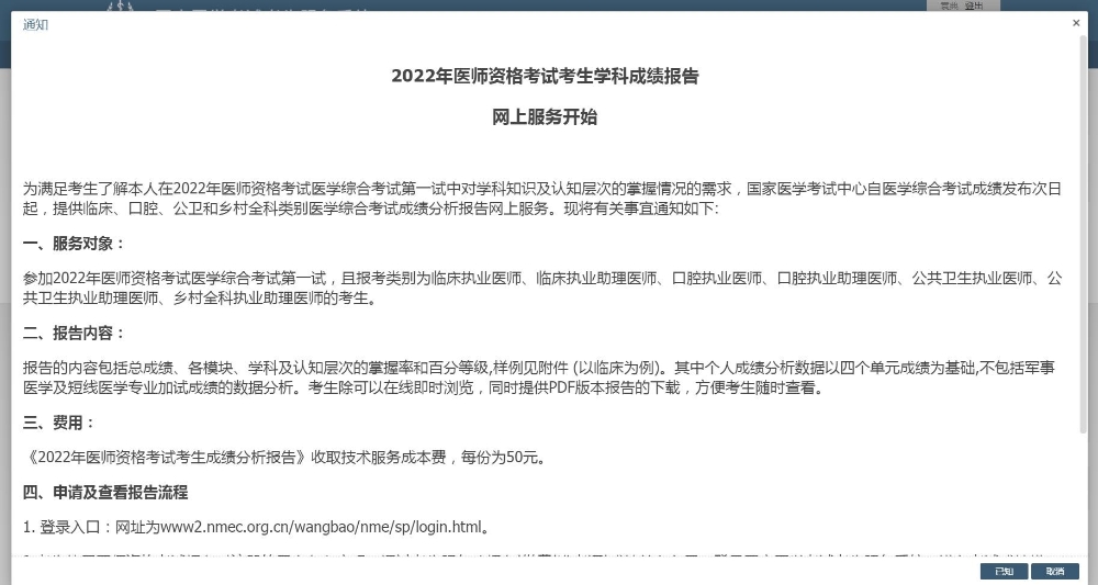 3.报名方式:请具有二试报名资格的考生,在国家医学考试考生服务系统“考试成绩”栏目下将会显示二试报名界面,考生阅读报考要求后进行考试报名。显示“二试报名”即预报名成功,进入缴费环节。具体步骤如下: