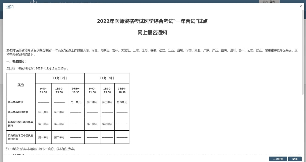 全国2022年中医执业医师资格考试医学综合考试(二试)报名及考试相关通知汇总