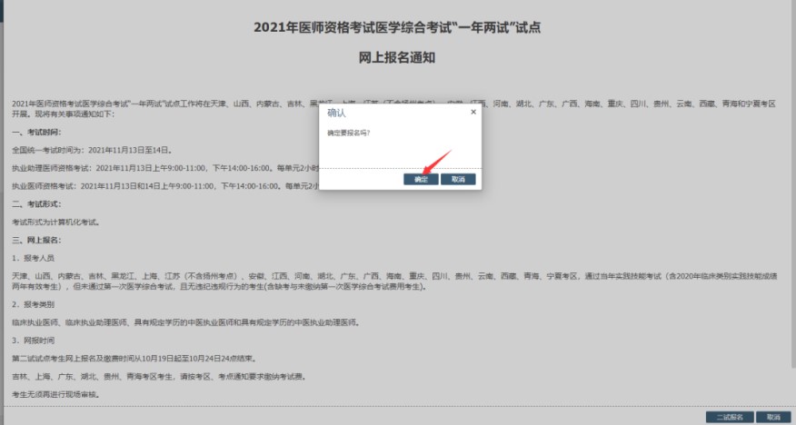 第五步:点击“确定”自动跳转至考试报名栏目,并显示“二试报名”灰色水印。