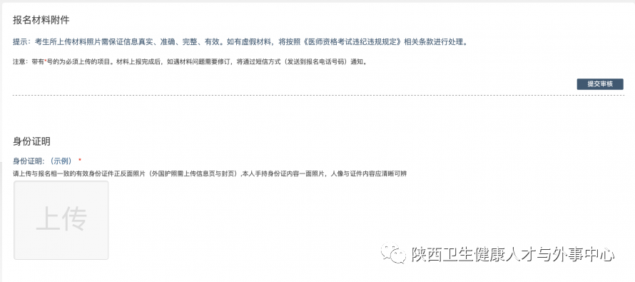 进入国家医学考试(陕西)考生服务系统(在线审核系统)后,显示的是材料上传界面