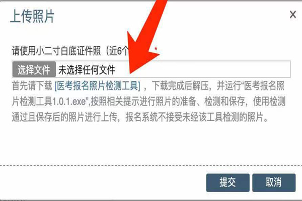 (一)考生在网报系统上传个人小二寸白底证件照时,必须按照系统提示内容下载并运行“医考报名照片检测工具”,网报系统只接受经该工具检测通过且保存后的照片进行上传。