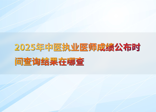 2025年中医执业医师综合考试成绩预计在9月公布,参考近年时间规律(如2024年9月13日、2023年9月19日),考后约1个月可查。