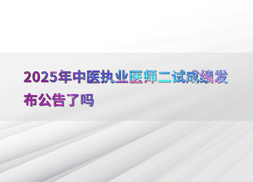 2025年中医执业医师一年两试成绩预计在11月末至12月初公布。