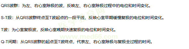 心电图各波段的意义是比较基础的内容,相对比较容易,但是也要明确具体定义,比如Q-T间期的起止点、P波为心房除极波等,复习时要多加注意医学|教育网。