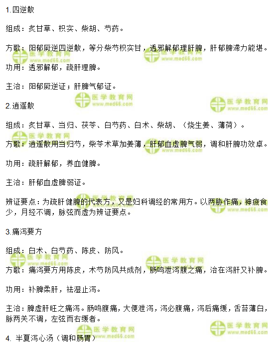 中医方剂学备考考点:调和肝脾、调和肠胃和解剂