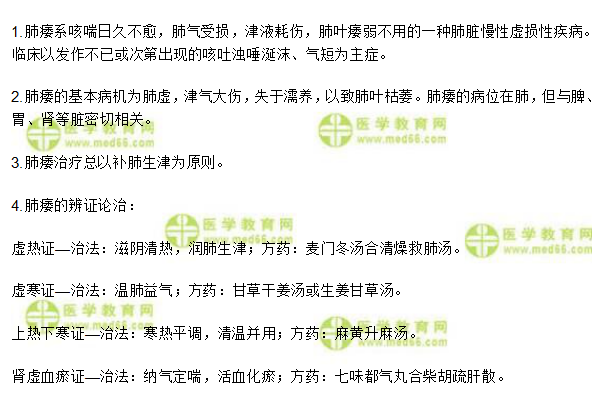 以上为“肺系病症—肺痿(中医执业医师中医内科学考点)”全部内容,由医学教育网小编整理,更多信息请随时关注医学教育网。