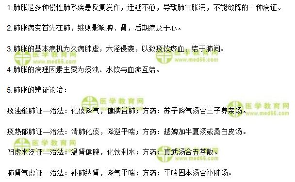 以上为“肺系病症—肺胀(中医执业医师中医内科学考点)”全部内容,由医学教育网小编整理,更多信息请随时关注医学教育网。