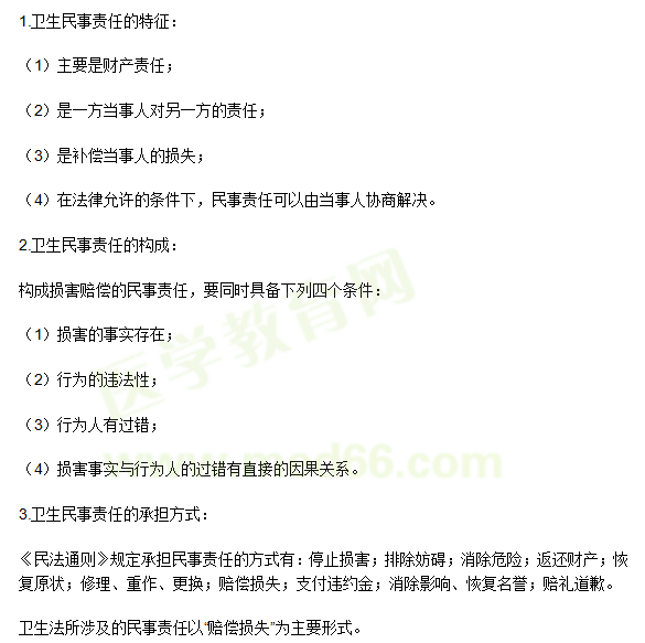 关于“中医执业卫生法规“卫生民事责任”考点”相关内容,相信参加中医执业医师考试的考生都想知道,为方便大家了解,在此医学教育网小编为大家整理如下内容: