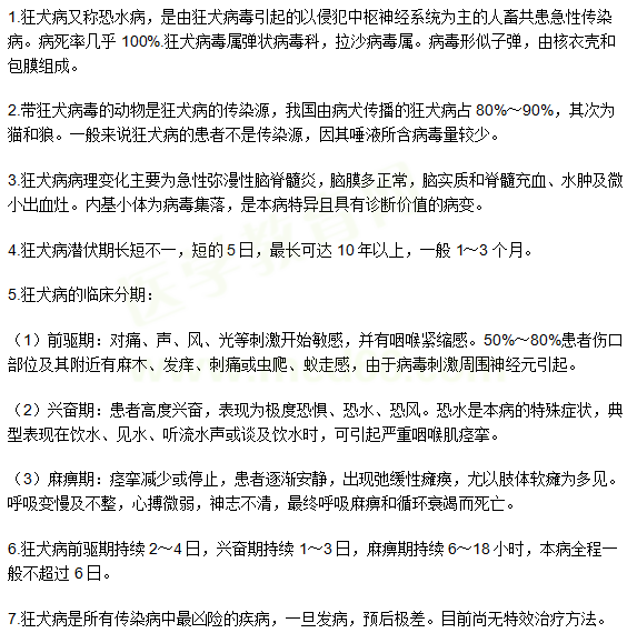 关于“传中医执业医师传染病学考点:狂犬病”相关内容,相信参加中医执业医师考试的考生都在关注,为方便大家了解,在此医学教育网小编为大家整理如下内容: