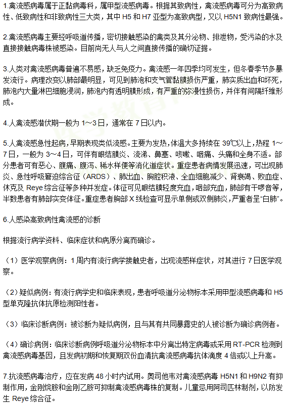 关于“传染病学:人感染高致病性禽流感—中医执业医师考点”相关内容,相信参加中医执业医师考试的考生都在关注,为方便大家了解,在此医学教育网小编为大家整理如下内容: