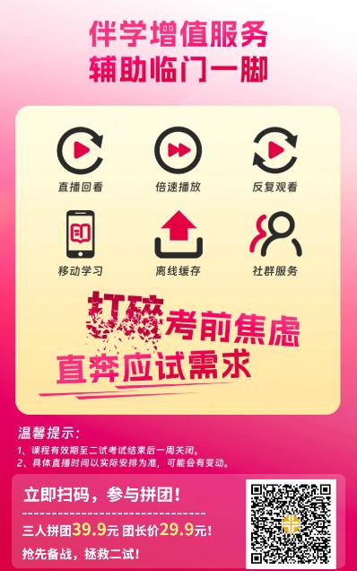 (温馨提示:仅限在活动期内购买课程,课程购买后到二试考试结束后一周关闭,过期自动关课)