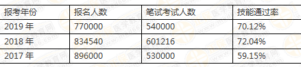 数据显示,近年来医师资格报考人数连续下降,2019年医师资格考试参加考试的考生约为54万人,与2018年相比总体人数减少了约6万人。医师资格考试虽然越来越难、越来越严,但参考人数下降,预测竞争激烈程度将有所下降,拿证的机会来了!