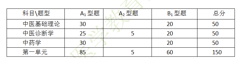 这一单元考察了中基、中诊、中药三个基础科目,每个科目各占50分。与去年相比科目分值占比及题型都没有变化。考点主要是基础知识,有一些边缘知识点。中基还是考察基础,五脏考察不少,每个单元均有题目涉及。
