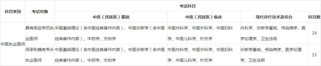 中医类医师资格考试医学综合笔试内容、考试形式以原卫生部医师资格考试委员会审定颁布的《医师资格考试大纲(中医、民族医、中西医结合医师)》为依据。中医执业医师医学综合笔试考试方案及内容见下表: