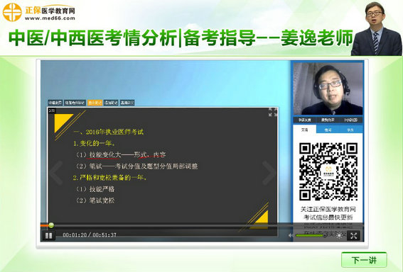 视频主题:《姜逸老师谈2016年中医、中西医医师考情分析及2017年备考指导》