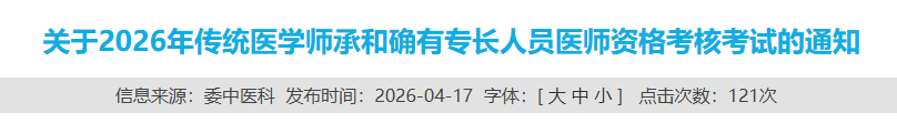 根据《河北省中医药管理局关于2026年传统医学师承和确有专长人员医师资格考核考试的通告》(冀中医药通〔2026〕1号)要求,结合我市实际,现将我市2026年传统医学师承和确有专长人员医师资格考核考试有关事项通知如下:
